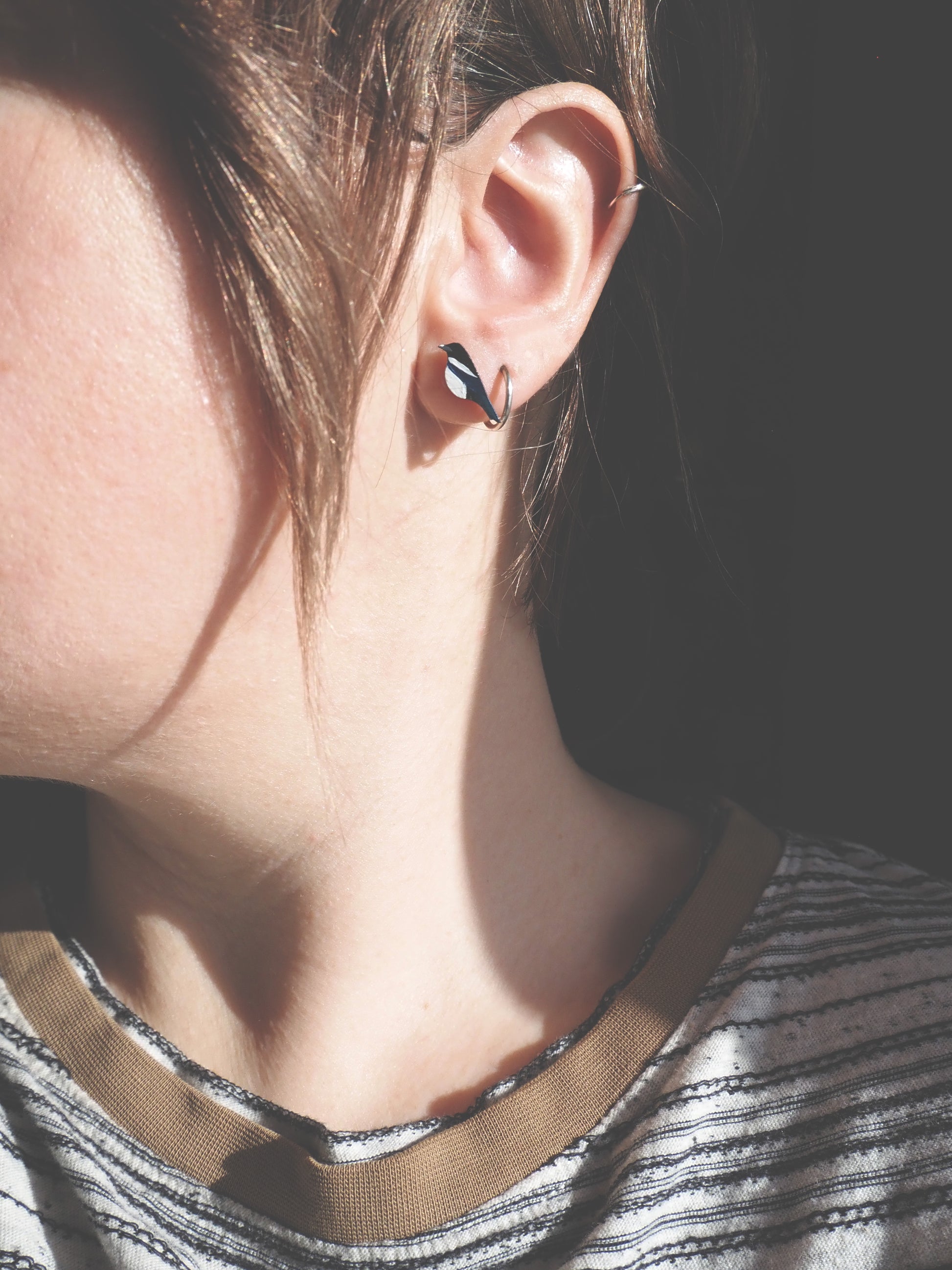 Celebrate one of Britain’s most iconic birds with these beautifully crafted magpie earrings. Designed from an original hand drawing, each piece is carefully transformed into a detailed laser-cut design, capturing the striking character of this curious bird.